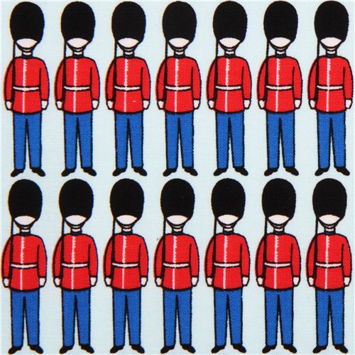 pale blue retro fabric from the USA with rows of London Queen's Guards