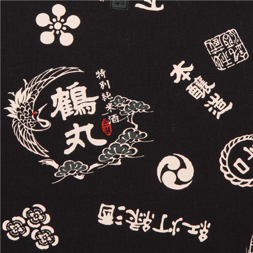black Sake rice wine label logo Canvas fabric by Cosmo from Japan Fabric