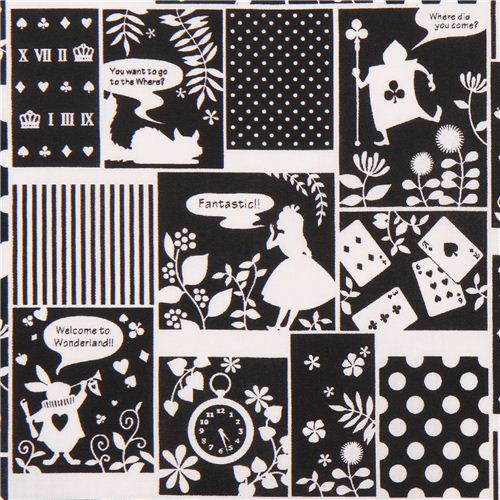 black-white Kokka Alice in Wonderland patchwork silhouette fairy tale fabric 3