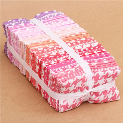 fabric bundle with 45 dot and houndstooth fabric pieces in shades of pink and purple