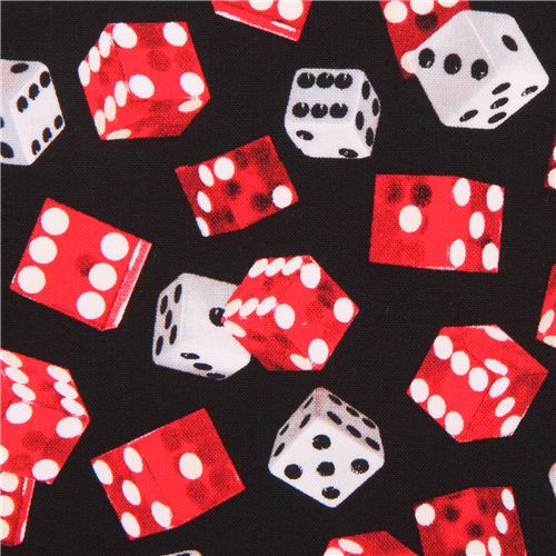 black cotton fabric with red and white dice