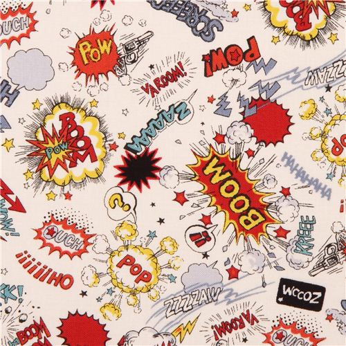 Japanese cartoon fabric with comic sound writings like 'BOOM', 'POW' or 'WHOOM' etc.
