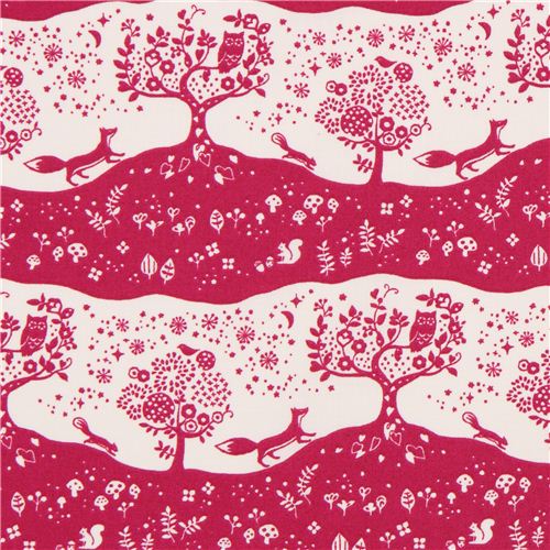 violet-cream forest fox cotton fabric from Japan Fabric