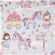 by Timeless TreasuresUnicorn Princesses Fabric. light blue cotton fabric with princesses, unicorns, carriages and clouds with silver glitter very high quality fabric, typical great Timeless Treasures quality
