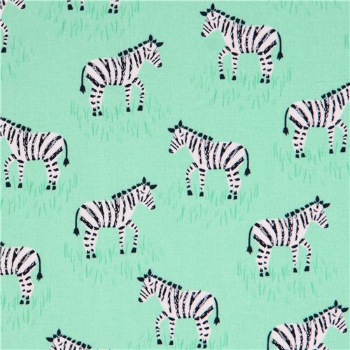 mint green 'Mini Zebras' animal fabric by Michael Miller USA Fabric