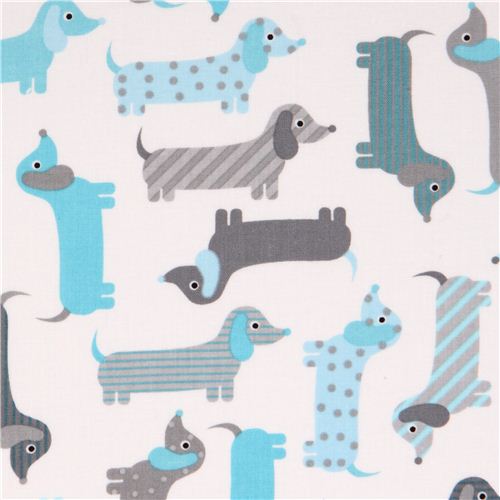 white-blue dachshund dog fabric Urban Zoologie by Robert Kaufman USA Fabric
