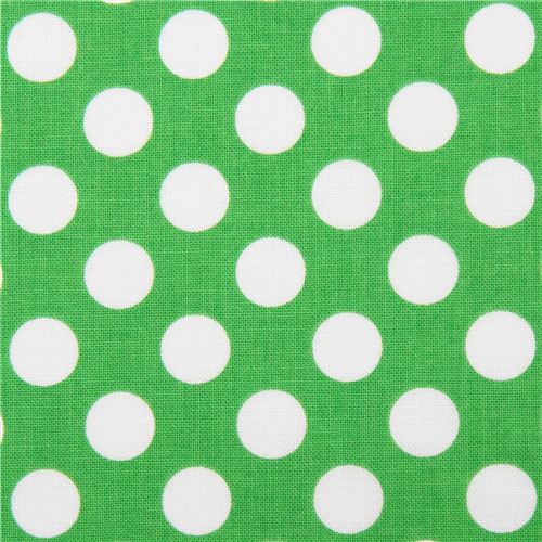 Michael Miller Fabric 'Ta Dot'. green cotton fabric with white polka dots very high quality fabric, typical great Michael Miller quality