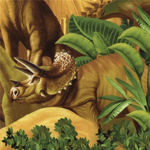 brown colorful dinosaur sun fabric by Timeless Treasures Fabric