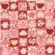 Hearts and Items Fabric. colorful cotton fabric with hearts, homes, tea cups etc. in pink, dark pink etc. with squares, patterns like dots, flowers etc. very high quality fabric, typical perfect Japanese quality