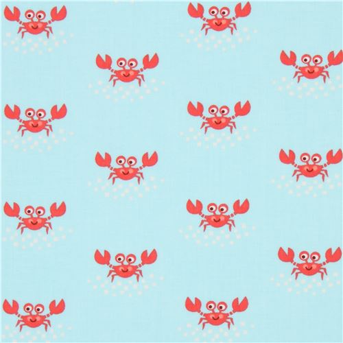 light blue Robert Kaufman cute funny crab fabric Fabric