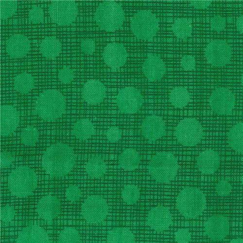 Michael Miller Fabric. green cotton fabric with green dots, dark green grid pattern very high quality fabric, typical great Michael Miller quality