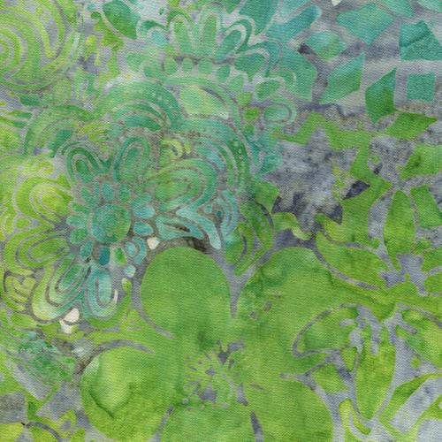 grey-blue batik lime green flower fabric by Timeless Treasures Fabric