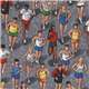 People Fabric. grey cotton fabric with marathon runners in colorful clothes very high quality fabric, typical great Timeless Treasures quality