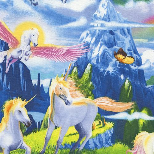 by Timeless TreasuresUnicorn Fabric. colorful cotton fabric with unicorns, rainbows etc. very high quality fabric, typical great Timeless Treasures quality