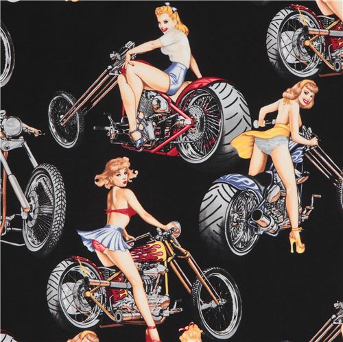 23 Hot Wheels Motorcycle Pin up Girls Fabric by Alexander Henry - modes4u
