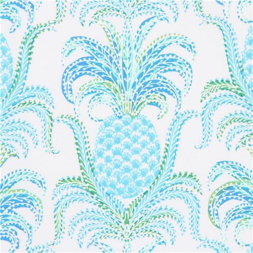 Michael Miller Pineapple Fabric. white cotton fabric with light blue pineapples very high quality fabric, typical great Michael Miller quality