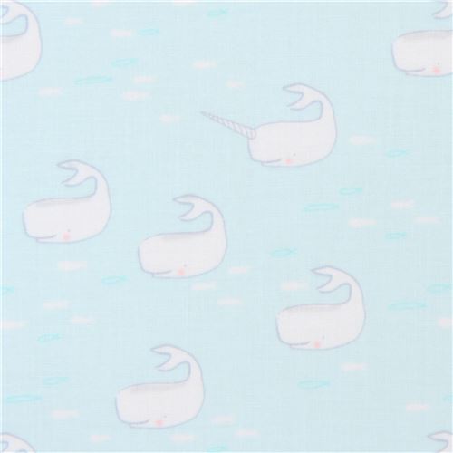 light blue Michael Miller fabric whale animal Find the Narwhal Fabric