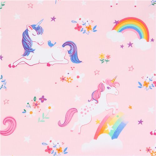 30 light pink Robert Kaufman rainbow Happy Little Unicorns Fabric by Robert Kaufman - modes4u
