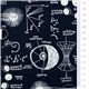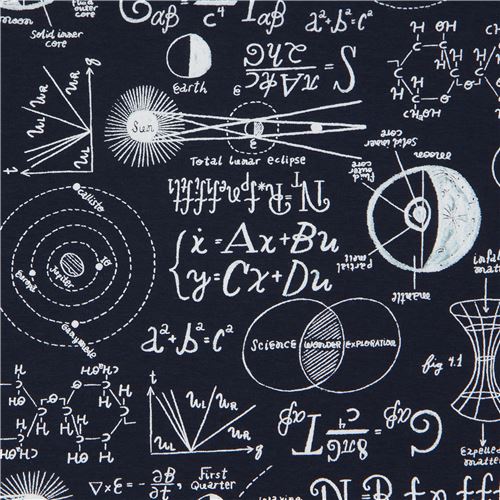 Science Knit Fabric. navy blue knit fabric with science related text and drawings about the sun, moon etc. very high quality fabric, typical great Dear Stella quality