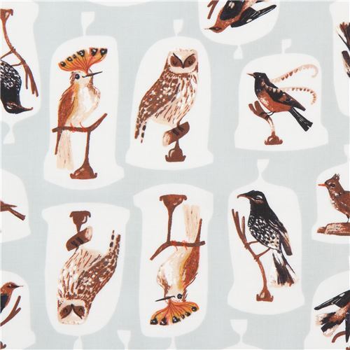 Light green Fabric by Dear Stella with birds in displays. light green cotton fabric with birds in display cases very high quality fabric, typical great quality from the USA