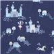by Timeless TreasuresDark Blue-Purple Unicorn Fabric. dark blue-purple cotton fabric with unicorns, castles etc. very high quality fabric, typical great quality from the USA