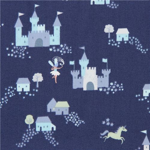 Dark Blue-Purple Unicorn Fabric. dark blue-purple cotton fabric with unicorns, castles etc. very high quality fabric, typical great quality from the USA