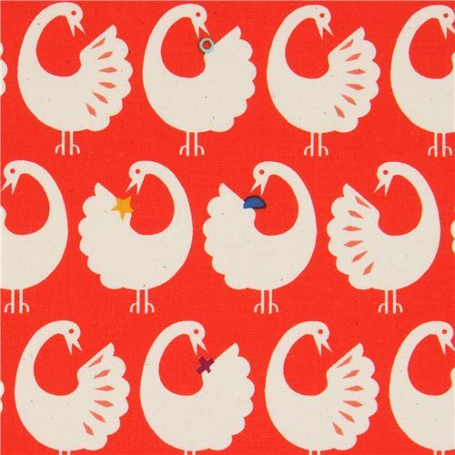 Orange-Red Bird Fabric. orange-red cotton fabric with birds very high quality fabric, typical great Cotton + Steel quality