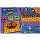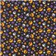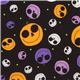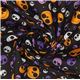 by Japanese IndieBlack Halloween Fabric with Faces. This super cool design features interesting skull-like smiling faces in white, purple, dark purple and orange with mini lime green dots in the background. It's an eye-catching design, that's for sure!
