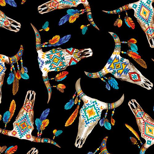 Remnant (44 x 112 cm) - black fabric with cow skull animal longhorn by Timeless Treasures Remnant (44 x 112 cm) - black fabric with cow skull animal longhorn by Timeless Treasures  2Remnant (44 x 112 cm) - black fabric with cow skull animal longhorn by Timeless Treasures  3