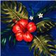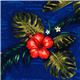 by Robert KaufmanBlue Exotic Flower Rayon Poplin Fabric. dark blue rayon poplin fabric with hibiscus flowers, tropical leaves