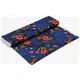 Blue Exotic Flower Rayon Poplin Fabric. dark blue rayon poplin fabric with hibiscus flowers, tropical leaves
