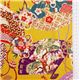 Yellow Fan Fabric by Quilt Gate. yellow cotton sheeting fabric with fan pattern, with cranes, cherry blossoms, ribbon, bells etc., with metallic gold embellishment