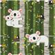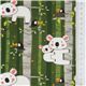 Koala Knit Jersey Fabric by Stof France. green jersey knit fabric with koalas, blackbirds, leaves, trees