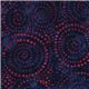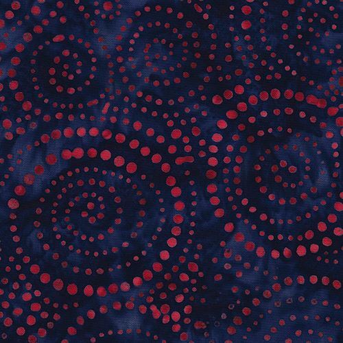 dark blue-grey cotton batik fabric with red dots forming swirls