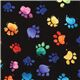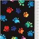 black Timeless Treasures fabric with colorful paw prints Fabric