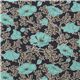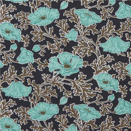 by Liberty FabricsGrey Poppies Fabric by Liberty Fabrics. dark grey cotton fabric with mint green poppies, with dark green leaves