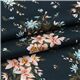 Bouquet Fabric by Liberty Fabrics. dark green-blue cotton fabric with flowers in peach, blue, with green leaves