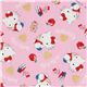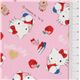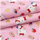 by SanrioPink Hello Kitty Hearts Oxford Fabric. pink oxford cloth fabric with Hello Kitty, apples, books, birds, with metallic gold hearts