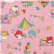 Pink Sanrio Theme Park Oxford Fabric. pink oxford cloth fabric with Little Twin Stars, Hello Kitty, carousel, balloons, rainbows etc.