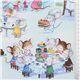 light blue fabric with mice as pastry chefs, with cupcakes, snacks, sweet treats etc., with cafe setting with guests enjoy tea and cakes