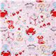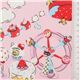 Pink Hello Kitty Dessert Laminate Fabric. pink laminated fabric with Hello Kitty, strawberries, pianos etc.