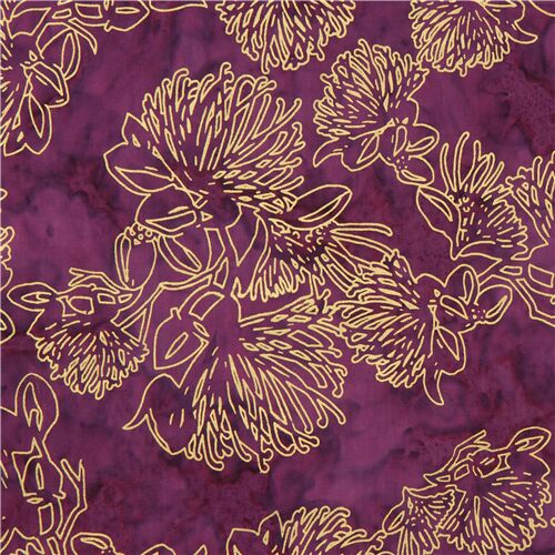 18 purple metallic gold Trans-Pacific Textiles batik fabric with flowers Fabric by Japanese Indie - modes4u