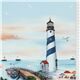 Blue Lighthouse Fabric by Michael Miller. light blue fabric with double border with lighthouses, boats, beach etc.