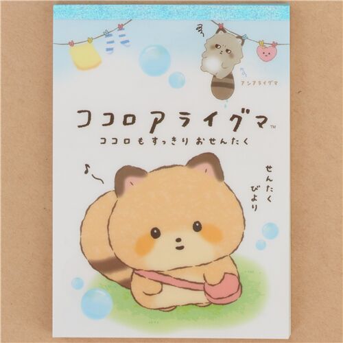 Kokoro Araiguma raccoon and bubble memo pad by San-X