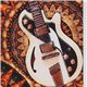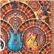 Electric Guitar Panel Fabric. cotton fabric with panel with guitars in blue, turquoise, orange etc., medallion patterns