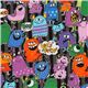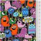 Cosmo striped Halloween fabric with colorful monsters Fabric