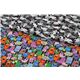 by CosmoColorful Monster Fabric by Cosmo. black and grey striped cotton fabric with monsters in orange, blue, green, light green etc.