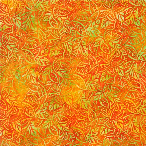 by Robert KaufmanBright Orange Leaf Batik Fabric by Robert Kaufman. orange batik fabric with leaves