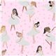 Pink Ballet Fabric by Dear Stella. pink cotton fabric with ballerinas, mini pink stars, with glitter