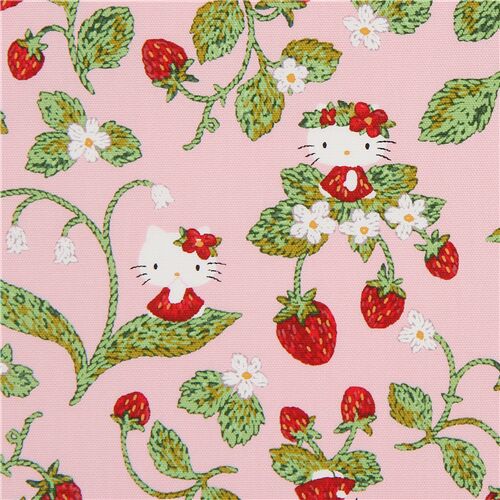 by SanrioPeach Hello Kitty Fruit Fabric. peach-pink oxford cloth fabric with Hello Kitty, strawberries, flowers etc.